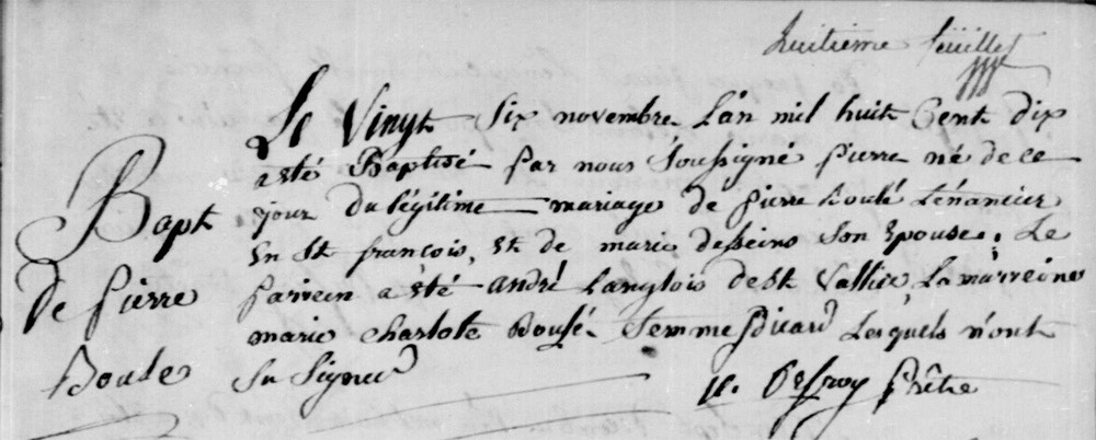- Baptême : 26-11-1810, St-Pierre-de-la-Rivière-du-Sud, QC