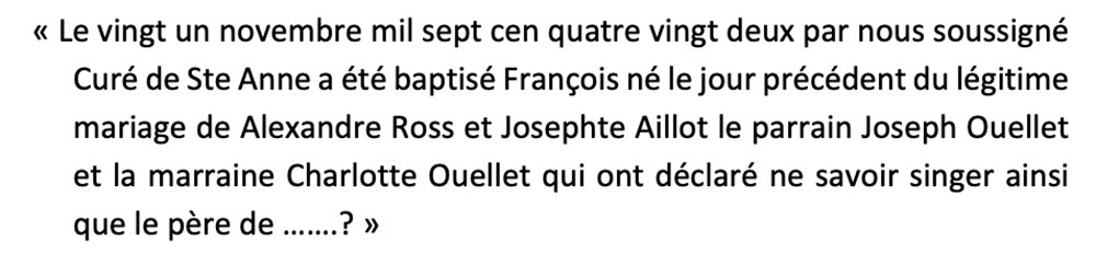- François Ross 1810--1811, parrain: Antoine Cazes (aïeul), marraine: Geneviève Lizotte