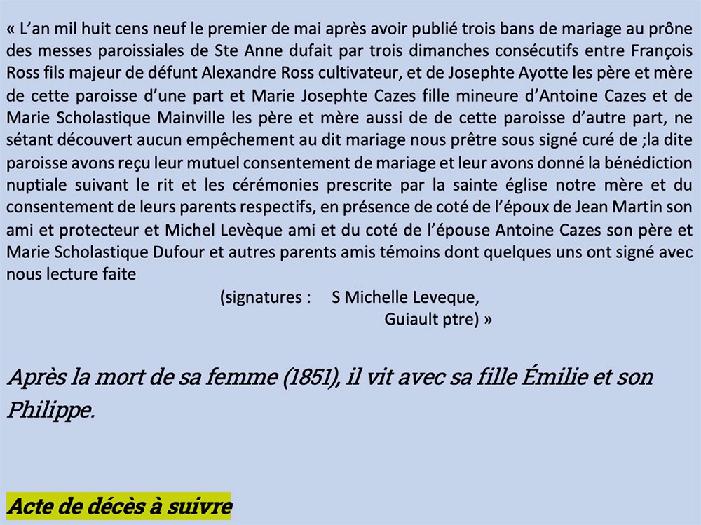 - M.-Josephe Ross 1812- mariée à Noël Couturier le 20-02-1838